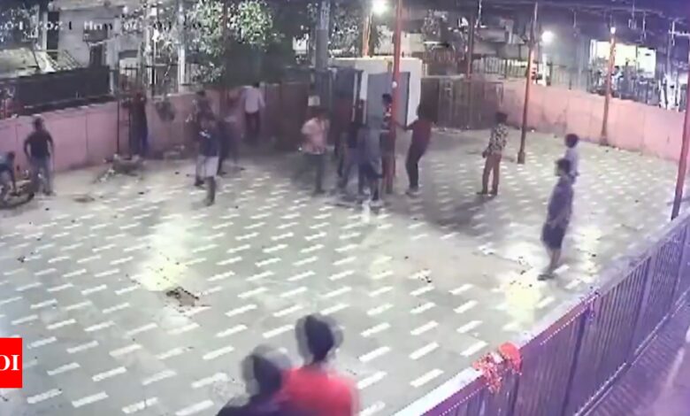 NEW DELHI: NEW DELHI: A CCTV footage has surfaced showing an alleged stone-pelting incident near a temple in Delhi’s Jahangirpuri area on Monday evening.